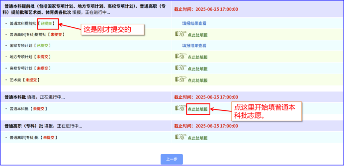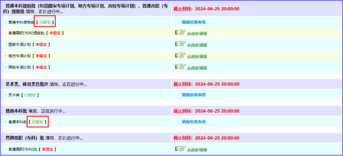 可以看到,普通本科提前批和普通本科批志愿已经填报完毕,如果还要填报其他志愿🌐,只需重复上述操作即可。