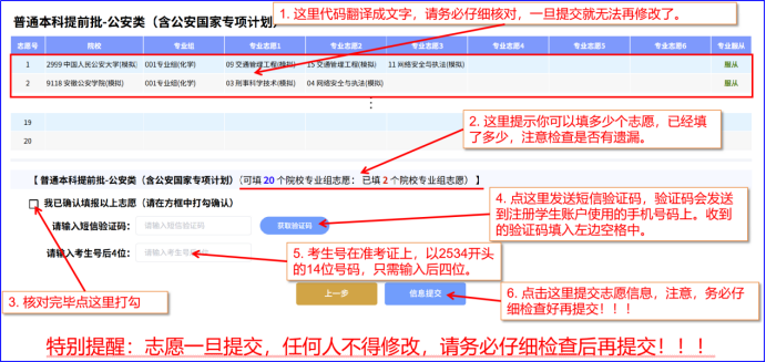 可以看到💁🏽,小王在普通本科提前批填了公安类2所院校专业组志愿,在普通本科批也填了2所院校专业组志愿🦞。