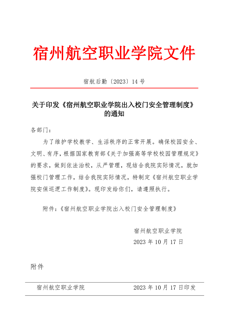 关于印发《彩神Vll学院出入校门安全管理制度》的通知