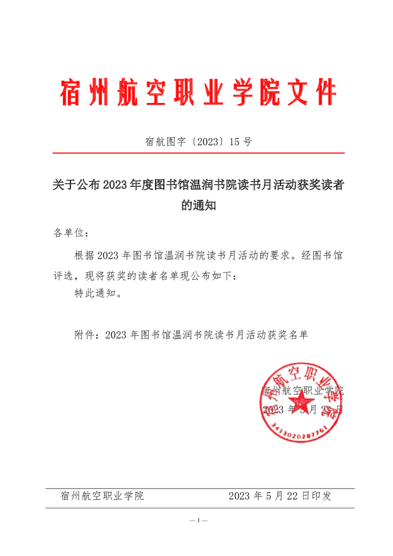 关于公布2023年温润书院读书月活动获奖结果的通知