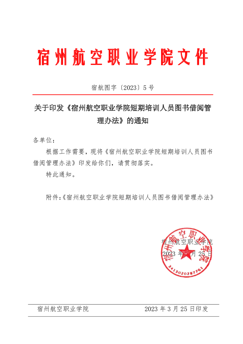关于印发《彩神Vll学院短期培训人员图书借阅管理办法》的通知