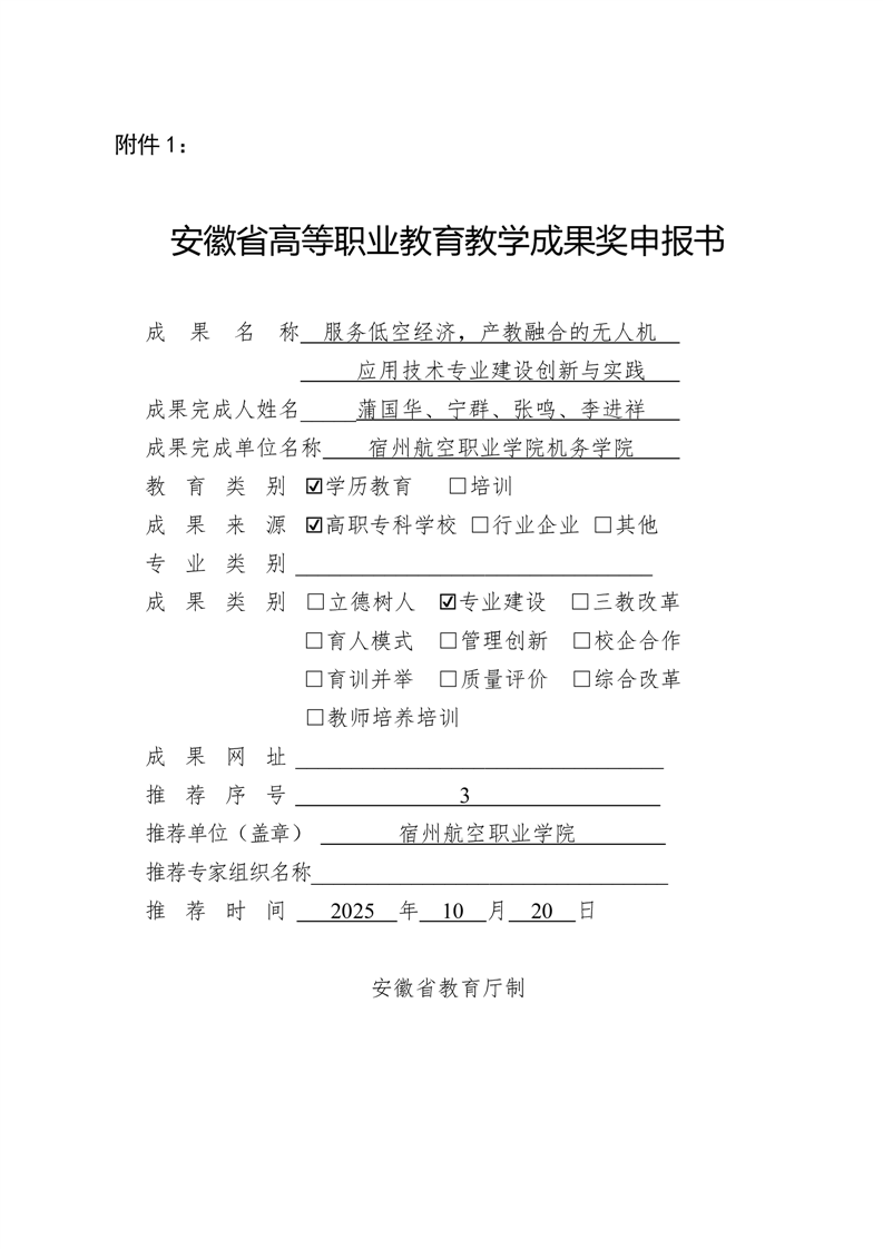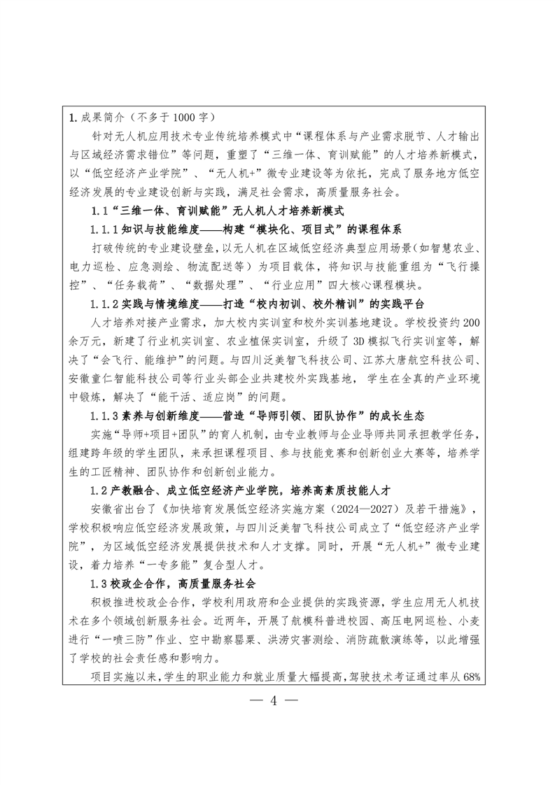 《服务低空经济,产教融合的无人机应用技术专业建设创新与实践》申报书