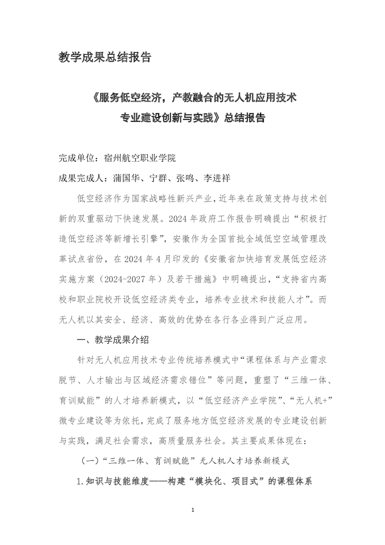 《服务低空经济,产教融合的无人机应用技术专业建设创新与实践》总结报告