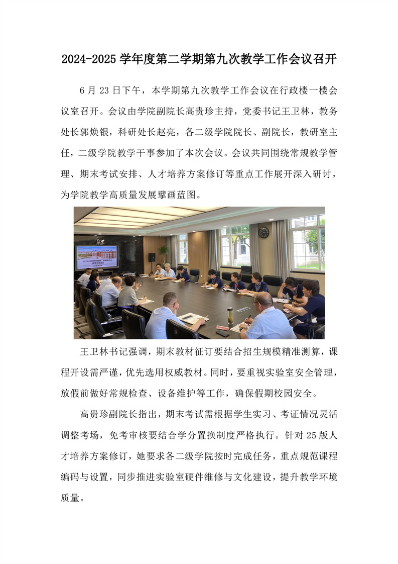 2024-2025学年度第二学期第九次教学工作会议召开