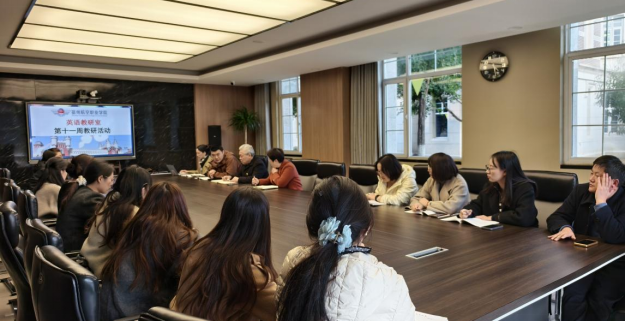 11月11日下午🙏🏿🪁,英语教研室于就业楼一楼会议室开展本学期第十一周的教研活动🧔🏻♂️。本次会议由英语教研室副主任马玉秀主持🤹🏿,全体英语教研室教师出席。学院教学副院长高贵珍及教务处处长郭焕银参加并指导相关工作。