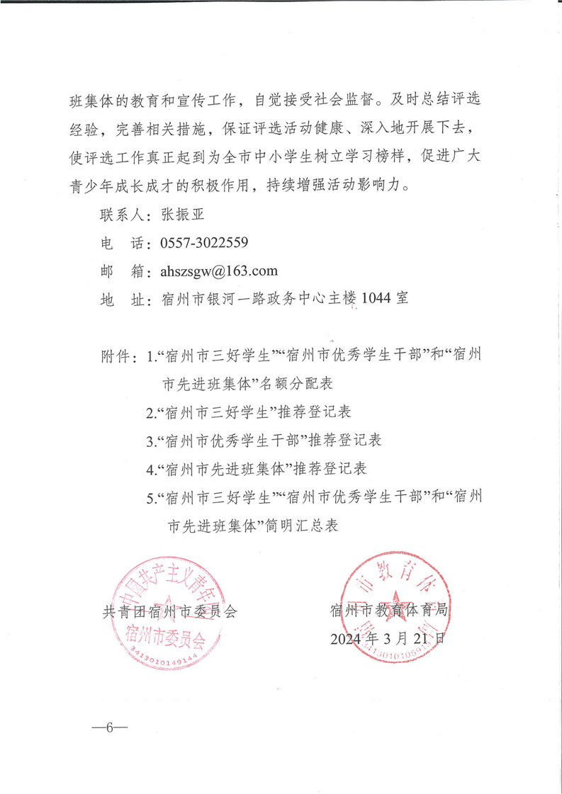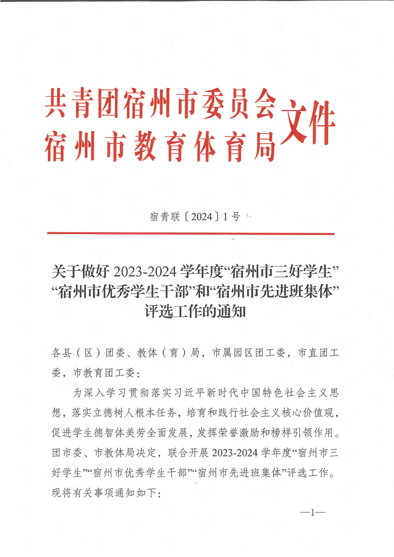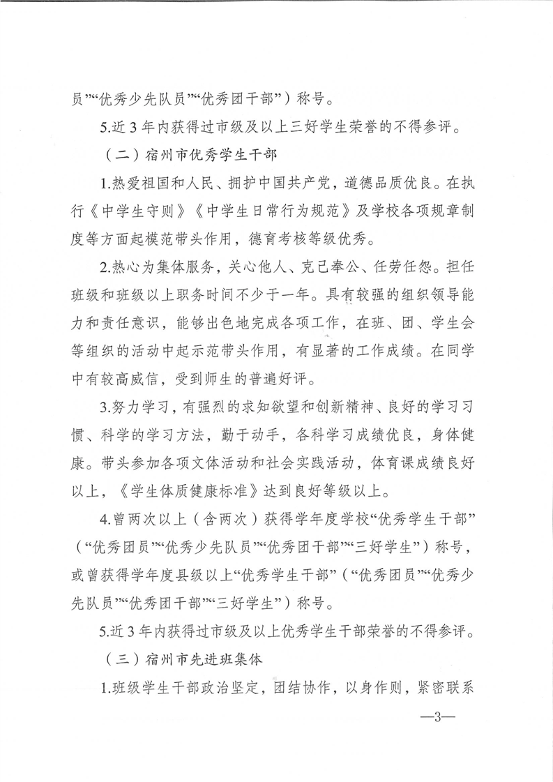 关于做好2023.2024学年度“宿州市三好学生”“宿州市优秀学生干部”和“宿州市先进班集体”评选工作的通知