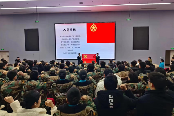 全体人员紧握右手🏊♂️🤗,重温入团誓词。这一刻🧯,在场学生深切地感受到作为团员的荣耀和责任。