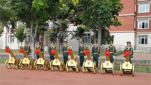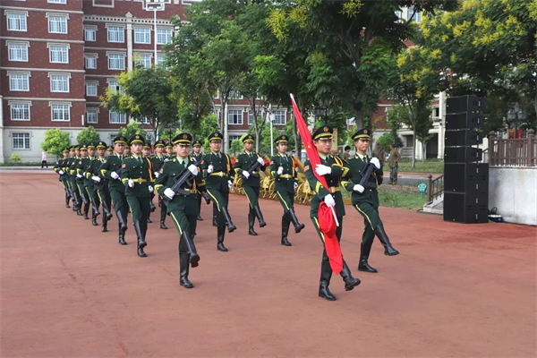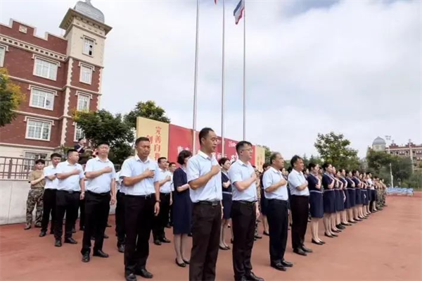 国旗护卫队迈着铿锵有力的步伐,护送国旗来到升旗台前。伴随着激昂雄壮的国歌,五星红旗冉冉升起,开学典礼正式拉开序幕🚵🏿。