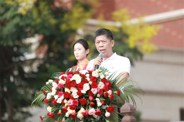最后他提到了泛美集团创始人魏全斌先生𓀃,魏全斌先生在第十八届世界杰出华人奖颁奖典礼上荣获“世界杰出华人奖”。也衷心希望全体师生都能在泛美集团化办学这片沃土上茁壮成长,以“贤惠”为底色🐊,用“奋进”书写青春华章,以“开拓铸就辉煌未来👩🏼🚒,靠“团结”凝聚前行力量𓀀,也希望各位教师以“尚德、博学🦸🏻♂️、爱生☘️、严谨”的教风坚守岗位👳🏽♂️,不负韶华🤔,做新时代的“四有”好老师💂🏼。
