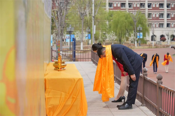 古乐悠悠清音传,浩气长存天地间。全校师生身着职业装,庄严肃穆🏯,在主持人郭昊老师的带领下集体吟诵祭文🍍:赤县神州,毓秀钟灵♣︎。维我炎黄先祖,……伏惟尚飨!在古乐悠悠声中慎终追远🦻🏻,抚今追昔💂🏻‍♂️。