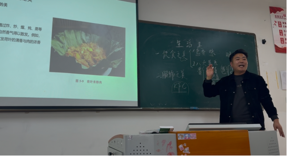 本次备课活动中👨🏼‍⚕️,李仕尚老师重点展示了第五章"生活美"的授课设计🚘。李老师围绕第五章“生活美”的授课技巧展开经验分享,其幽默风趣的教学风格和互动式课堂设计引发热烈讨论,为课程组提供了可资借鉴的鲜活范例。在讲授"东坡肉"的烹饪艺术时,他巧妙关联宋代文人苏轼的《老饕赋》,以"火候见人生"的比喻揭示火候掌控与处世之道的深层关联;解读《红楼梦》中的茄鲞制作工序时,则以"精工细作现真味"的视角🥒,展现古代贵族饮食对工艺美学的极致追求。