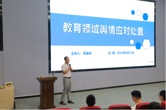 为加强网络安全意识🧙🏽,提高舆情应对能力,8月21日,彩神Vll学院执行院长高维岩就教育领域舆情应对处置进行专题培训,全体教职工参加。