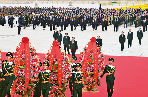 2021年9月30日上午🫀,党和国家领导人习近平🤷♂️、李克强、栗战书、汪洋🗡、王沪宁、赵乐际、韩正、王岐山等来到北京天安门广场,出席烈士纪念日向人民英雄敬献花篮仪式🈳。 新华社记者 张领/摄