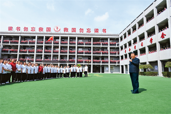 2021年9月13日至14日,中共中央总书记🙄、国家主席🙅🏽、中央军委主席习近平在陕西省榆林市考察。这是14日上午,习近平在绥德实验中学考察时,同师生亲切交流。 新华社记者 谢环驰/摄