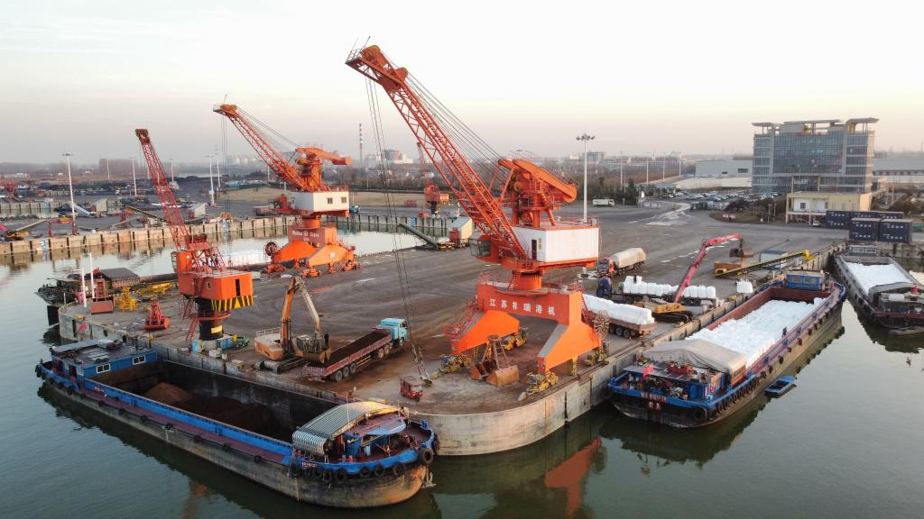 这是2025年1月7日拍摄的周口中心港范营作业区👨🏿‍🦰。新华社发 (刘俊涛摄)