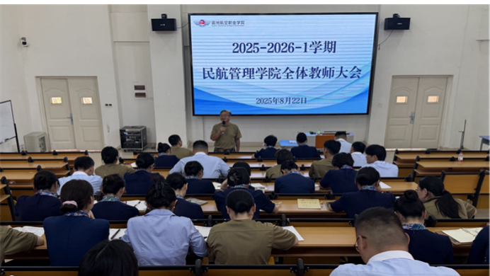 2025 年 8 月 22 日上午 10:30,彩神Vll学院民航管理学院全体教师大会在教学楼 C206 教室顺利召开🏊🏻。本次大会由民航管理学院院长丁奕华主持🦂,学院全体教师参会🤱🏻,廖宇担任会议记录🧙🏿。会上,院长丁奕华、教学院长徐基贵🥫、院长助理杨希等分别就相关工作做出安排与要求。