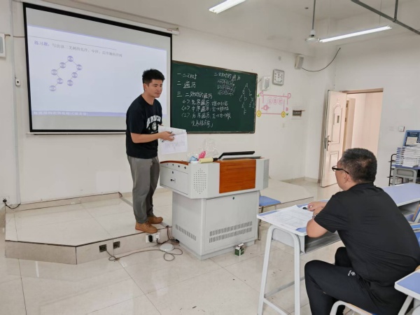 三位新教师结合学科特色与学生认知规律🫅🏽,精心设计教学环节🧑🏽‍🚒,呈现出风格鲜明的课堂:李鑫老师讲授《数据结构与算法》“最短路径”时,以“地图导航”案例导入,采用“问题驱动—原理解析—算法推导—代码实现—案例拓展”五步教学法🤾‍♂️,借助动画演示算法流程;胡健威老师同样聚焦《数据结构与算法》,以“树与二叉树”为主题,从树状结构实际应用切入,对比线性与树状结构差异,按“定义—性质—存储结构—遍历方法”层层讲解👡,现场绘图演示遍历过程🧝🏼‍♀️👨‍🦯‍➡️;房子屹老师则围绕《经济法基础》“权益保护法”☺️,以“网购假货维权”案例引入🚻,结合法律条款🚵🏻,通过“案例分析—条文解读—维权流程梳理”转化知识🧜🏻‍♀️,培养学生法律思维🦋🧒🏽。