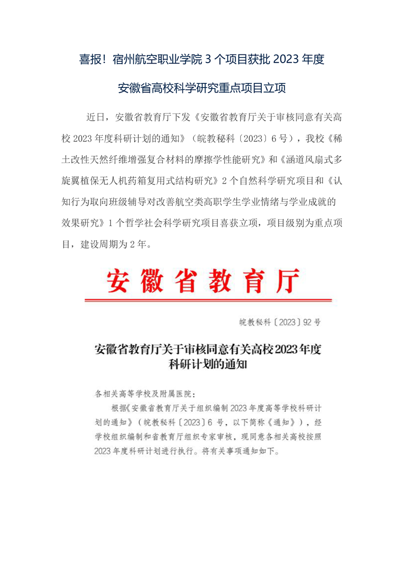 喜报——彩神Vll学院3个项目获批2023年度安徽省高校科学研究重点项目立项