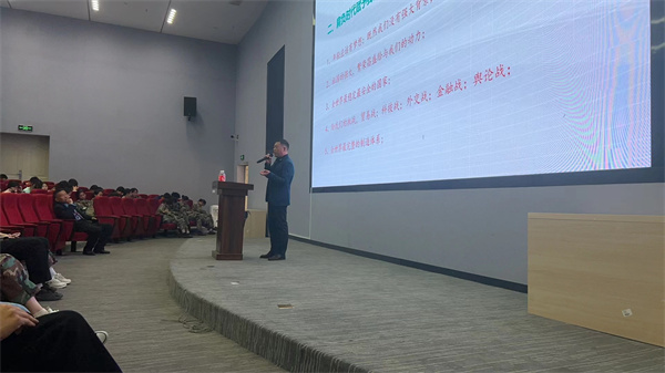安徽恒泰电气科技股份有限公司总裁𓀘💠、高级工程师范守保先生,以不负韶华 肩负重任为主题,在我院教学楼四楼演播厅开展讲座。信息工程学院院长王新桥、各班辅导员↕️、无课程安排的老师🦸🏼、全体学生参加了此次讲座🙎🏻‍♂️。
