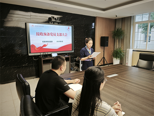 2025628日下午,机务学院党支部在行政楼一楼会议室隆重召开预备党员接收大会,审议并通过了接收薛雨、余明亮、张礼湘、江革良🫄🏼、杨立达五位同志为中共预备党员的决议。学院党委委员、纪委书记高贵珍同志出席大会,与全体党员共同见证了这一神圣时刻🦸🏿‍♂️。