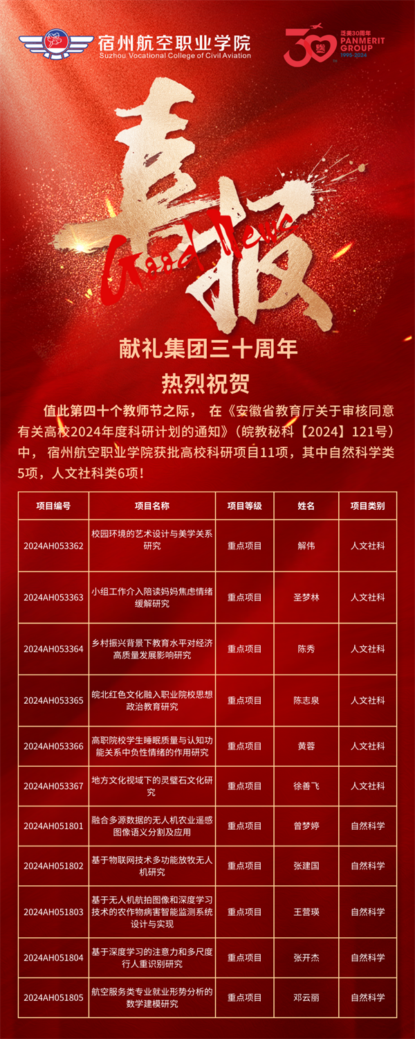 喜报❣️!宿航11个科研项目获批安徽省2024年高校科研重点项目!