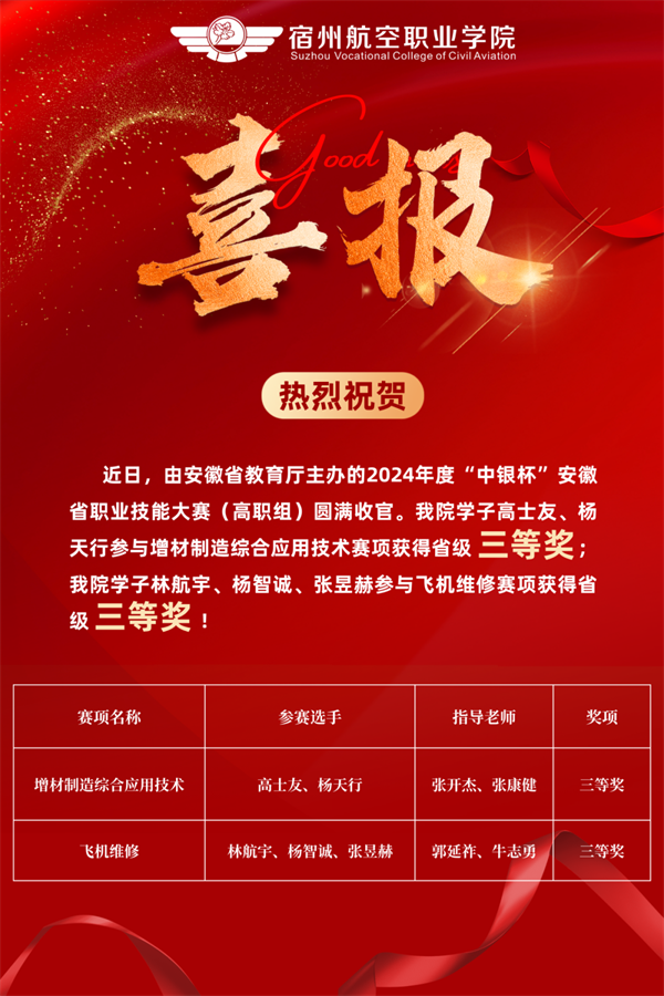 我院参赛学子充分发挥精益求精、严谨细致🩵🦞、务实踏实的作风👩🏫,在机务学院教师张建国💆🏻、郭延祚🛌🏻、牛志勇、李承昊,信息工程学院教师王营瑛🌊、张开杰、张康健、任学俊的指导下,与省内各市所高等职业院校参赛队伍进行激烈角逐,凭借着深厚的知识储备🚵🏻♀️、卓越的技术水平、熟练的技能操作及良好的职业素养沉着应战🤛☯️,分别荣获“飞机维修赛项”省级三等奖和“增材制造综合应用技术赛项”省级三等奖的佳绩🚈🚫!