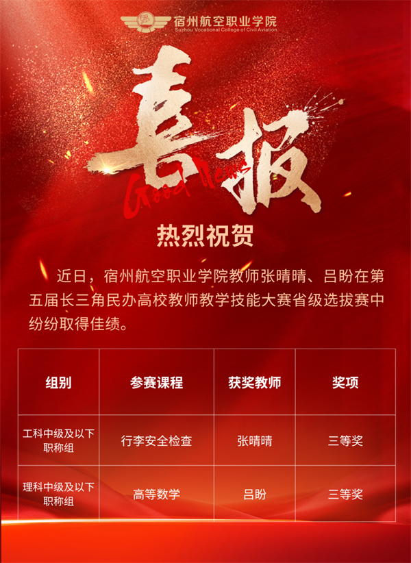 喜报🧑💼!宿航教师在长三角民办高校教学技能大赛中斩获佳绩